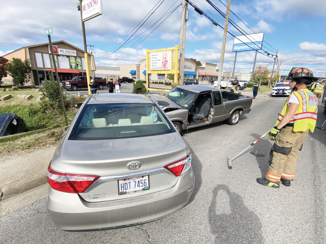 The Vienna Volunteer Fire Department responded to a three-car accident Tuesday morning along Grand Central Avenue near the Be Young Nail Salon. All three drivers were transported to the hospital. (Photo by Evan Bevins)