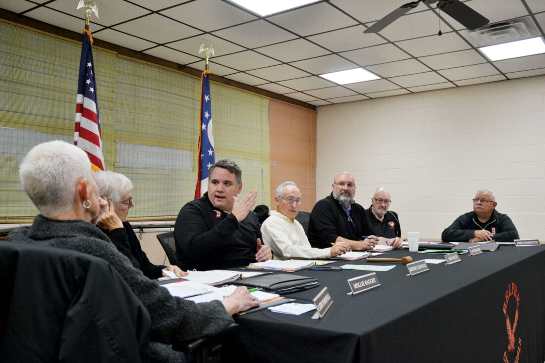- Belpre City Schools Superintendent Jeff Greenley, third from left, talks to the Belpre City Schools Board of Education on Thursday about changes in four of Ohio’s property tax bills made by the House and state Senate. Greenley said the 2026 sales tax holiday will be canceled next year. (Photo by Douglass Huxley)
