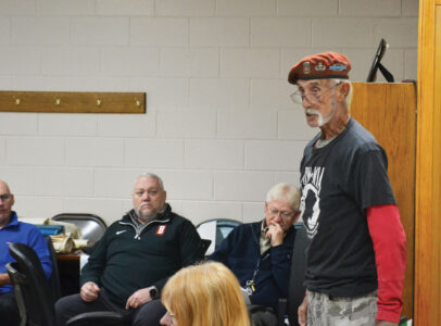 Belpre resident Larry Block spoke to the Belpre City Schools Board of Education on Thursday about attending Veterans Day events at the elementary and high school. He said both schools did a fantastic job with their ceremonies and he was thankful for the teachers and students for their efforts. (Photo by Douglass Huxley)
