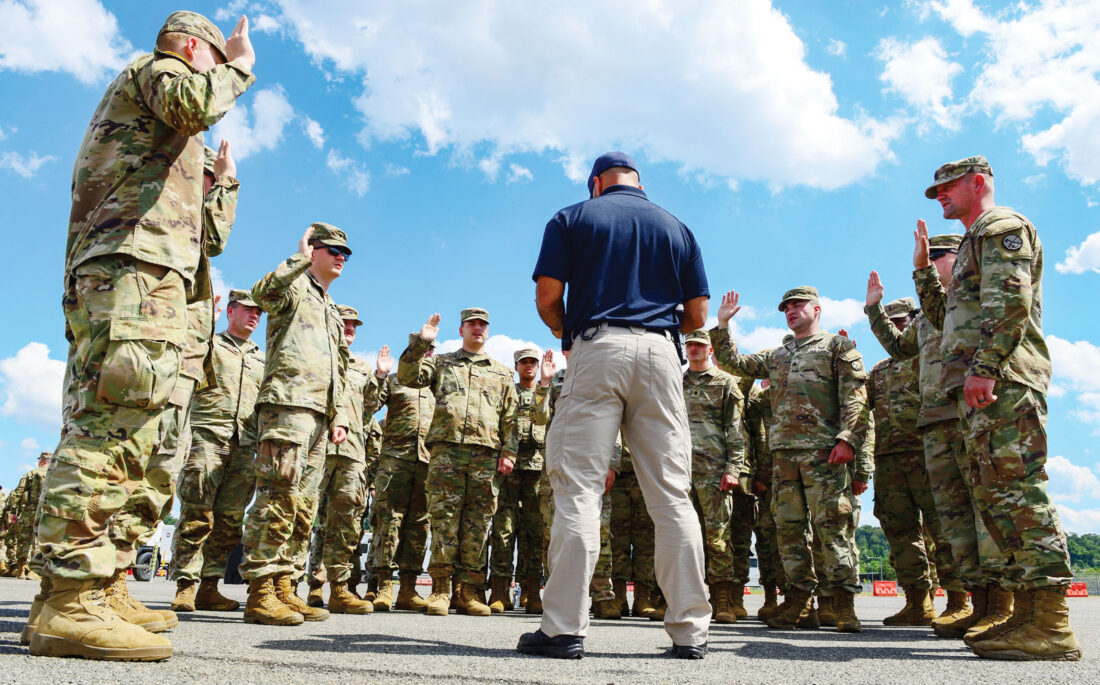 West Virginia National Guard Soldiers recite the oath to become deputized to support to Joint Task Force – District of Columbia at Joint Base Anacostia-Bolling on Aug. 25. (Photo courtesy of the Army National Guard)
