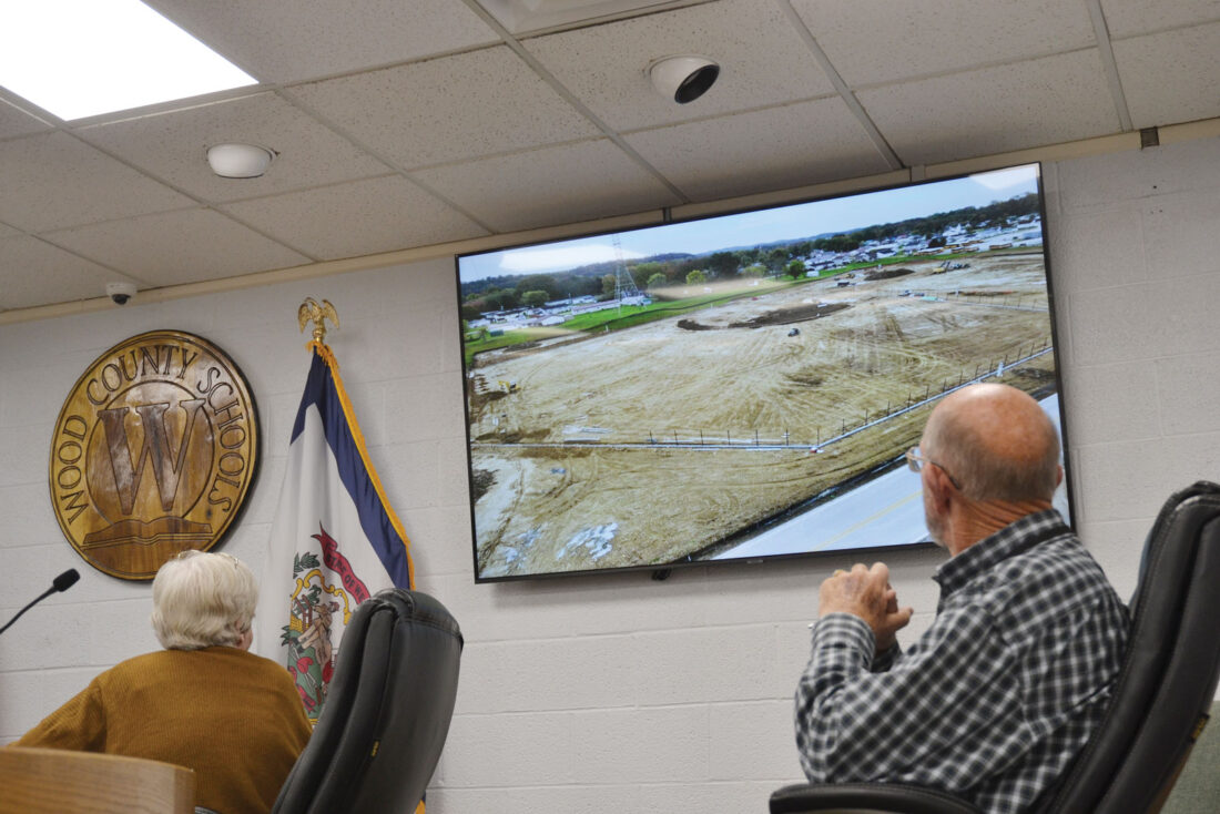- Wood County Board of Education members Debbie Hendershot and Randy Modesitt look at work being done to the Parkersburg South High School baseball and softball complex as construction work continues. (Photo by Douglass Huxley)