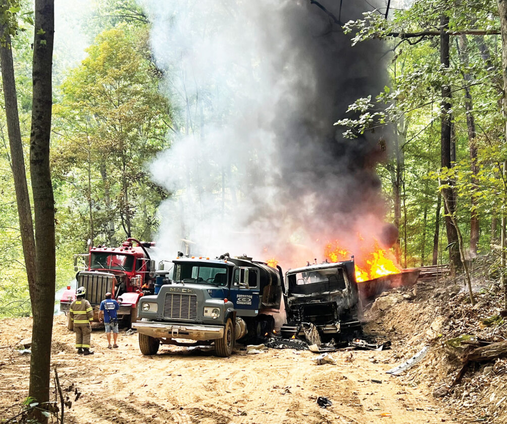 Vehicles and equipment at a well site in Independence Township inside the Wayne National Forest burn after an Aug. 25 explosion. (File Photo)