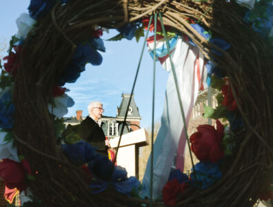 - Jack Bowman was the keynote speaker at the 80th Pearl Harbor anniversary ceremony Dec. 7, 2021, at West Virginia University. (Photo by Ron Rittenhouse/The Dominion Post)