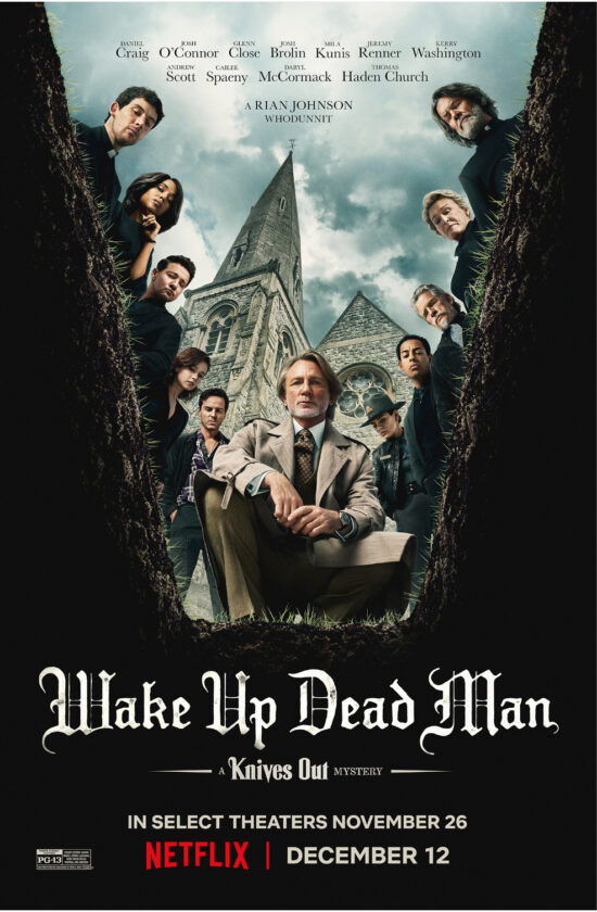 After two installments of his “Knives Out” franchise skewered old and new money, director and writer Rian Johnson targets religion in his third, a gloomy and clunky outing that may test fans’ faith in the filmmaker. “Wake Up Dead Man: A Knives Out Mystery” gets a new starry cast to orbit Daniel Craig’s foppish detective Benoit Blanc, mixes operatic overacting with sly humor and bites off more than it can digest attempting cultural satire. The pacing is off, too. You won’t exactly need to be nudged awake but it gets pretty soggy there for a while in the middle. Blanc takes his sweet time to appear, which means that the first half of the movie is carried by the young Catholic priest Jud Duplenticy — a name Johnson apparently thinks is witty — who is sent to a troubled New York parish called Our Lady of Perpetual Fortitude run by a monsignor who is “a few beads shy of a rosary.” The young priest — played by a really winning and soulful Josh O’Connor — is a former boxer with a troubled past who in his new faith has found guidance and meaning. He preaches the gospel of love and calls himself “young, dumb and full of Christ.” What he finds is that the parish is run by a thunder-and-lightning monsignor who preaches the gospel of fear. Played deliciously by Josh Brolin, Monsignor Jefferson Wicks uses shame and guilt to keep his tiny flock in line against a permissive world. “Anger lets us fight back,” he announces. “I hold the line.” Johnson is making a leaden dig at those in power who inflame divisions for their own power. When Wicks is found dead, Blanc finally shows up. The manner of the death is a classic detective book trope: The so-called locked-room mystery. Blanc calls this crime’s “Holy Grail.” There are many suspects, of course: His devoted secretary (Glenn Close), an alcoholic doctor (Jeremy Renner), the groundskeeper (Thomas Haden Church), a sci-fi novelist in decline (Andrew Scott), a cellist with nerve pain (Cailee Spaeny), and a MAGA-like political hack (Daryl McCormack), and the woman who raised him, a resentful lawyer (Kerry Washington). Johnson tries hard to give each depth, despite their sheer number, with telling details, like the way they tap a spoon on a tea cup. Chief among the suspects is our bare-knuckle priest, whose relationship with the older Man of God has gone from bad to worse. “You’re poisoning the church,” he tells the monsignor and vows to “cut you out like a cancer.” No wonder the town’s police chief (Mila Kunis) quickly zeros in on the younger man. There’s no way you can solve this one so just relax and let it stutter-stop several times to its overcooked end. Along the way, Johnson makes jokes about Oprah, “The Phantom of the Opera” and even Netflix, the hand that feeds him, while dead bodies go headfirst down the stairs thunk-thunk-thunk, an $80 million diamond appears and suspects scream, as storms swirl, that “Vengeance is mine!” Perhaps the movie’s best bits are when the young priest and detective team up to solve the crime. Blanc reveals himself to be a “proud heretic” who only “kneels at the altar of the practical” and believes religion is just storytelling, a means of control. The younger priest believes the opposite and is torn between sleuthing and his ministry, his open heart propelling the movie while Craig’s Foghorn Leghorn, Southern-fried dandyism grows increasingly tiresome. (Although fans do get to hear him utter “Scooby Dooby Doo.”) Johnson has so far made a few glancing blows against cults of personality and the dynamics of in-groups, but nothing terribly crushing. He then comes to more tricky waters when the monsignor seemingly emerges alive from three days in a crypt, a riff from a foundational tenet of Christianity: the resurrection itself. It’s the ultimate in glib. A satisfying conclusion awaits but, truth be told, it has been a bit of a slog, with soft digressions into social critiques and the meaning of faith grafted onto a setup that, by the third movie in the franchise, shows its seams instantly. Wake up, indeed. “Wake Up Dead Man: A Knives Out Mystery,” a Netflix release in theaters now that hits the streamer Dec. 12, is rated PG-13 by the Motion Picture Association for violent content. bloody images, strong language, some crude sexual material and smoking. Running time: 140 minutes. One and a half stars out of four.