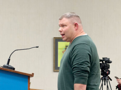 Parkersburg resident Shawn Cox tells members on the Urban Renewal Authority he wishes to purchase 639 Madison Ave. as a yard extension on Tuesday. (Photo by Amber Phipps)