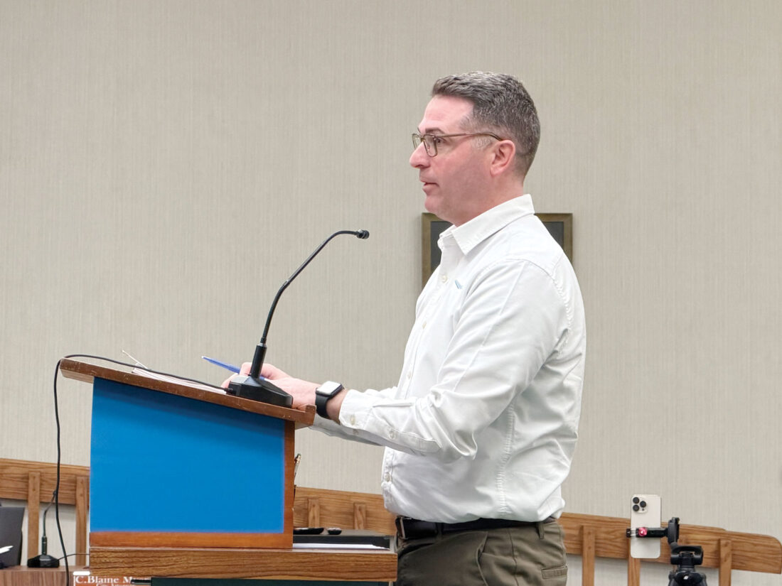 Parkersburg Development Director Ryan Barber responds to questions from council during the Urban Renewal Authority meeting on Tuesday. (Photo by Amber Phipps)