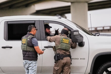 - FILE – Customs and Border Patrol agents question occupants of a vehicle they pulled over, during an immigration crackdown in Kenner, La., Dec. 5, 2025. (AP Photo/Gerald Herbert, File)
