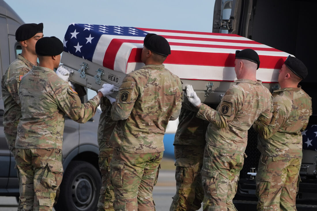 - An Army carry team places the flag-draped transfer case with the remains of civilian interpreter Ayad Mansoor Sakat of Macomb, Mich., into the transfer vehicle during a casualty return, Wednesday, Dec. 17, 2025, at Dover Air Force Base, Del. (AP Photo/Evan Vucci)