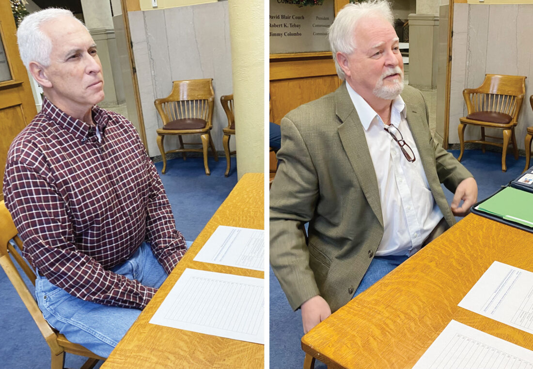 The Wood County Commission interviewed Tim Goosman, left, and Rick Olcott, right, on Thursday for positions on the Lubeck Public Service District Board. Both men are being considered for two open positions on the board which makes decisions for the district and its operations. (Photos by Brett Dunlap)