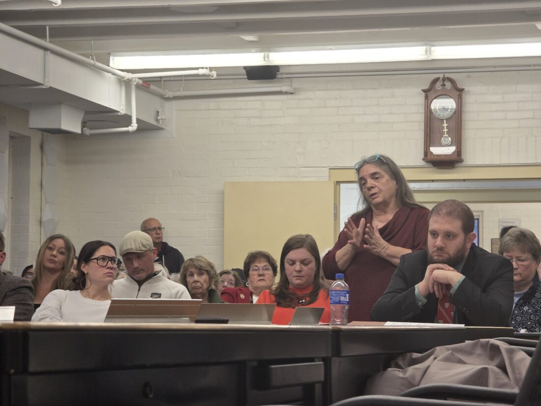 - Ethan Vessels shares his concerns regarding the safety of the proposed overnight shelter during Wednesday afternoon’s Marietta Planning Commission meeting at the Armory. (Photo by Gwen Sour)