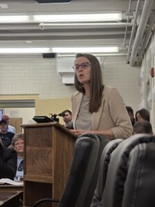 - Renee Steffen, executive director of the Sisters Health Foundation, shares her support for the Washington County Homeless Project’s overnight shelter during Wednesday afternoon’s Marietta Planning Commission meeting. (Photo by Gwen Sour)