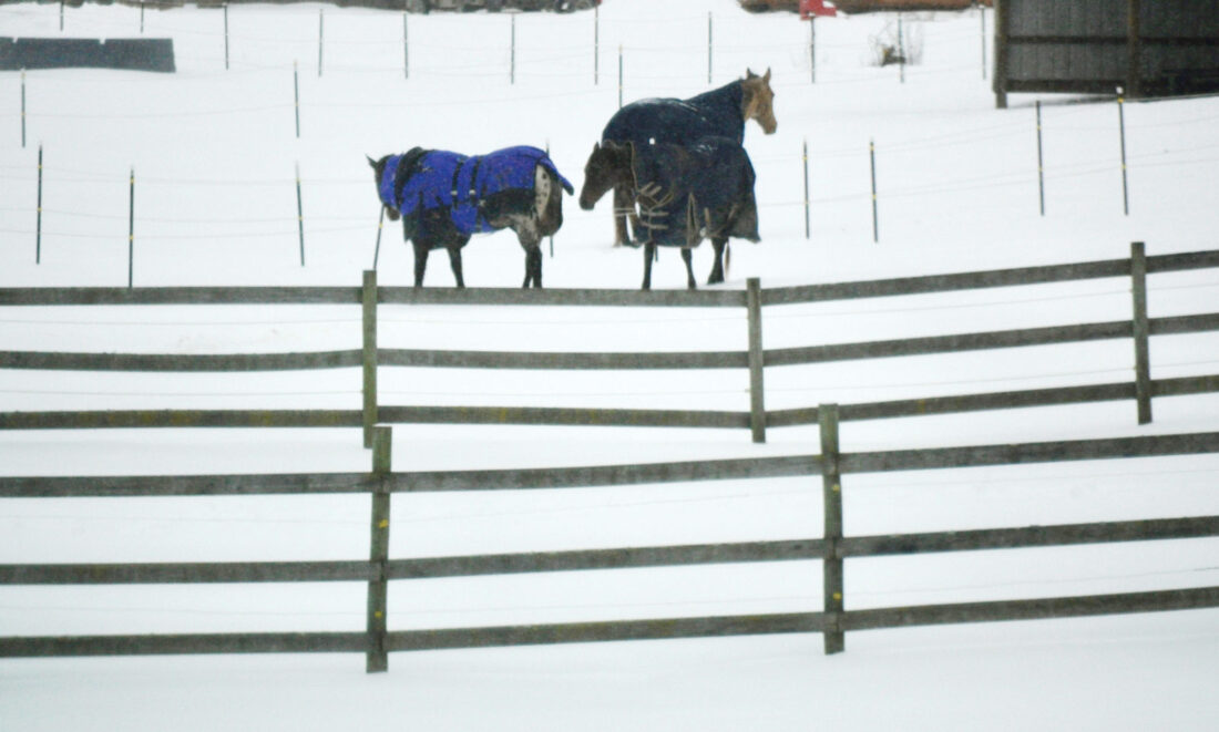 - A trio of horses at Cherry Creek Equestrian at Ohio Routes 676 and 339 contrast with the freshly fallen snow. (Photo by Art Smith)