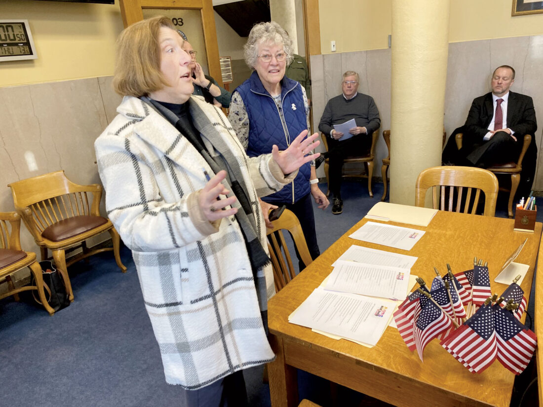 West Virginia University at Parkersburg Director of Civic Engagement Senta Goudy appeared before the Wood County Commission on Thursday to discuss local plans many groups and organizations have for 2026 to commemorate the 250th anniversary of the founding of the United States of America. Dottie Bibbee of the Wood County Historical Society also provided some information to the commission about things they have planned as well. (Photo by Brett Dunlap)