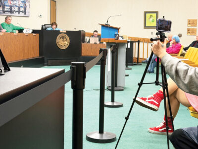 - Sections were roped off in council chambers during the Parkersburg City Council meeting Tuesday night. Press and audience members were required to stay outside the newly cordoned areas. (Photo by Amber Phipps)