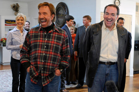 The intentionally outlandish statements featured in the 2008 Republican presidential primary, when Norris endorsed Arkansas Gov. Mike Huckabee and shot an ad playing on the “Chuck Norris facts.”