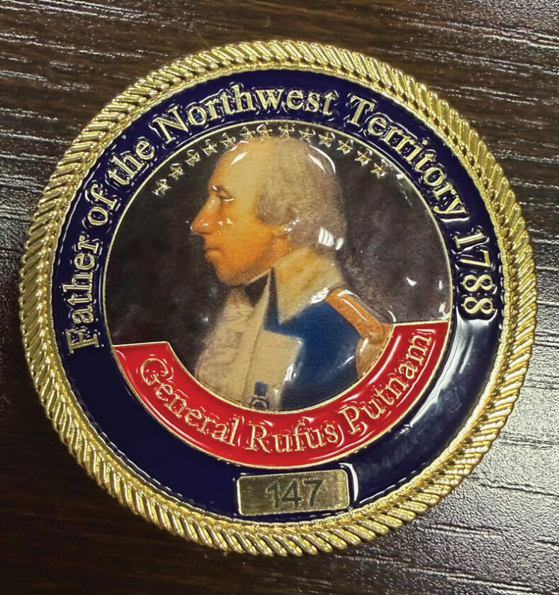 One side of the Washington County America 250 commemorative coin features General Rufus Putnam and the date the Northwest Territory was established.(Photo provided by Shannon Beacham)