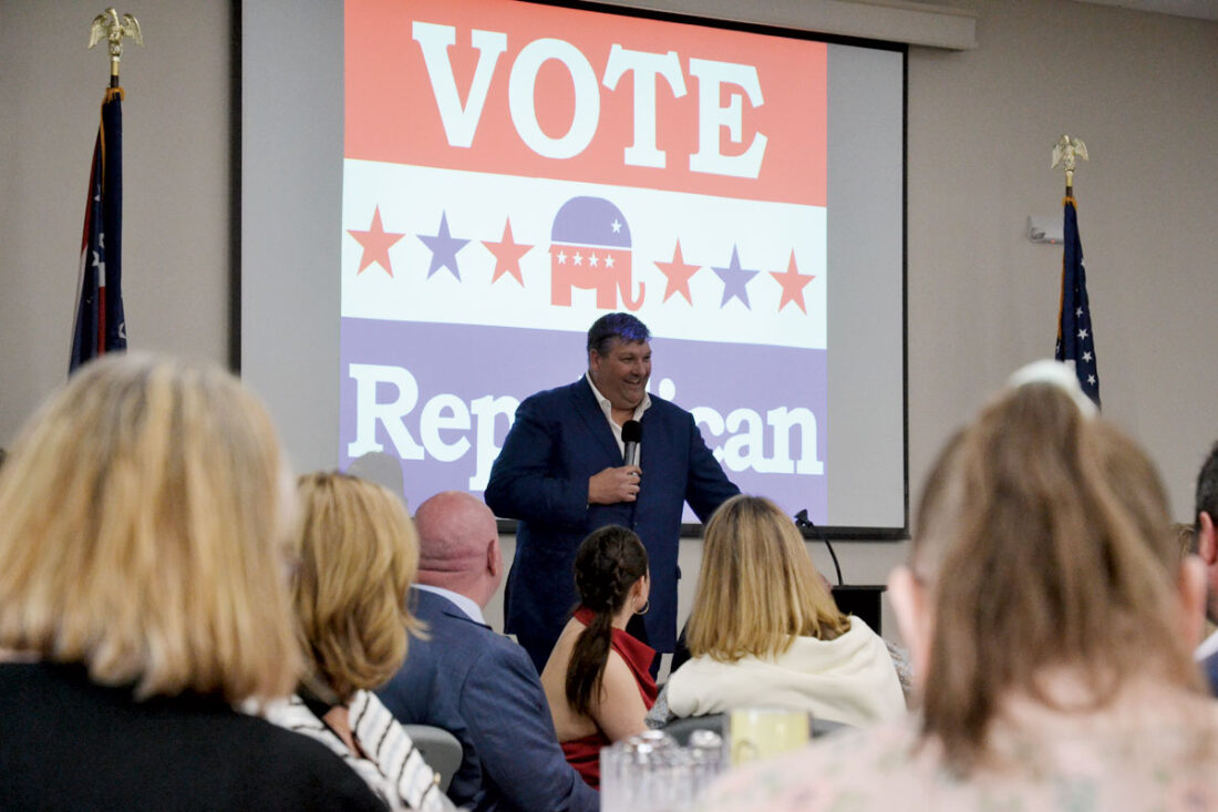 - Bob Carr, Republican candidate for Ohio’s 2nd Congressional District, spoke to people gathered Tuesday at the Washington County Republican Party’s annual Lincoln Day Dinner at the Tower Event and Conference Center in Marietta. (Photo by Douglass Huxley)
