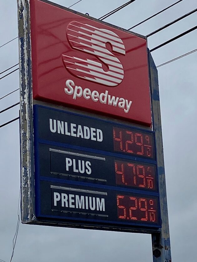 This shot from the Speedway in Belpre shows gas up to $4.29 a gallon. (Photo by Brett Dunlap)