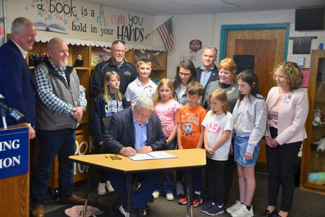PARKERSBURG – West Virginia Gov. Patrick Morrisey discussed efforts to improve students’ reading skills during a ceremonial bill-signing event Monday at Gihon Elementary.
