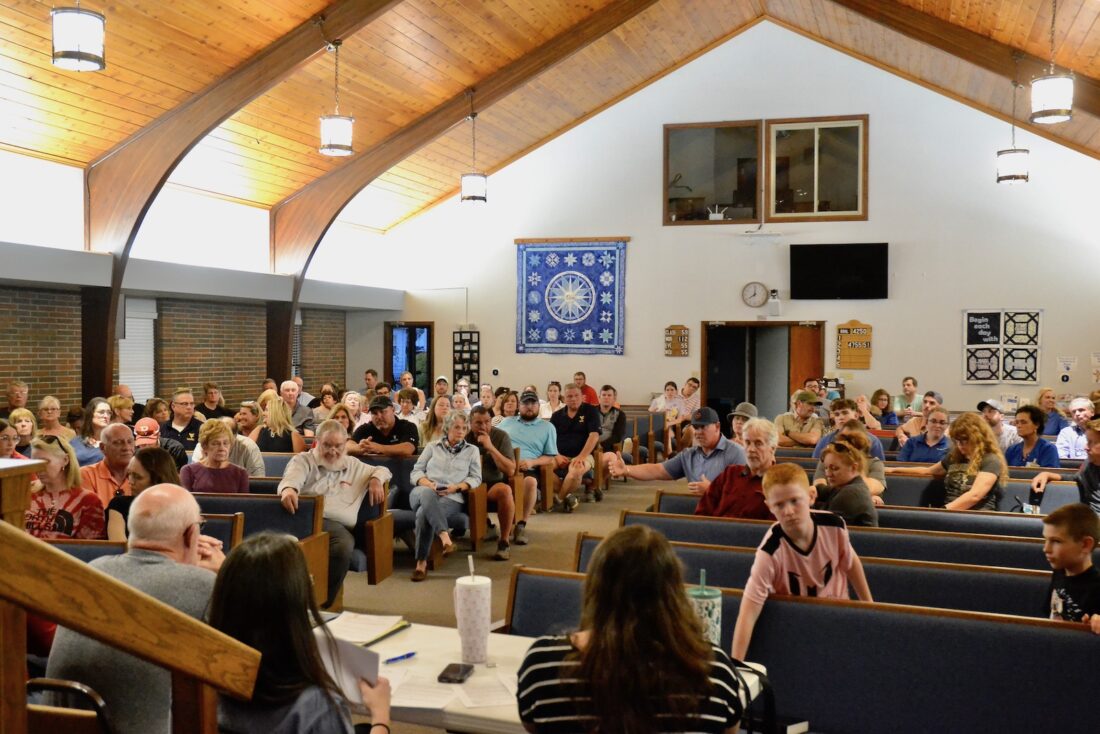 Dozens of residents packed the 36th Street Church of Christ in Vienna to talk about the pool and what can be done to fix the wall.