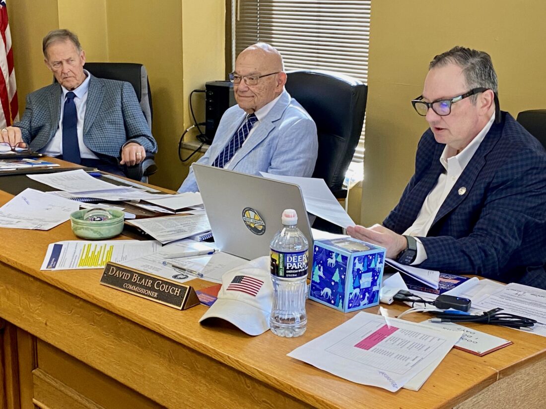 Wood County Commissioners Jim Hamric, Jimmy Colombo and Blair Couch during their regular Thursday meeting where they passed a proclamation honoring local emergency telecommunicators and designating April 12-18, 2026 as National Public Safety Telecommunicators Week. (Photo by Brett Dunlap)
