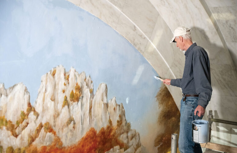 CHARLESTON — Just as scaffolding is going up in the upper rotunda to begin work on the final four of eight murals in the State Capitol Building, a lawsuit was filed to halt the project, accusing state officials of not following state law.