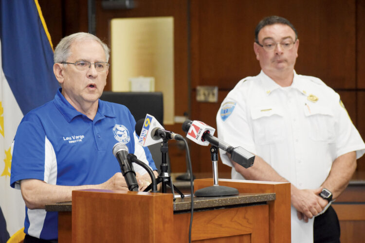 Officials with the Ohio County Emergency Management Agency, Ohio County Sheriff’s Office, Wheeling Police Department ...