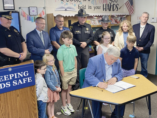 Morrisey was at Gihon Elementary School to have a ceremonial bill signing for House Bill 2802 that encourages ...