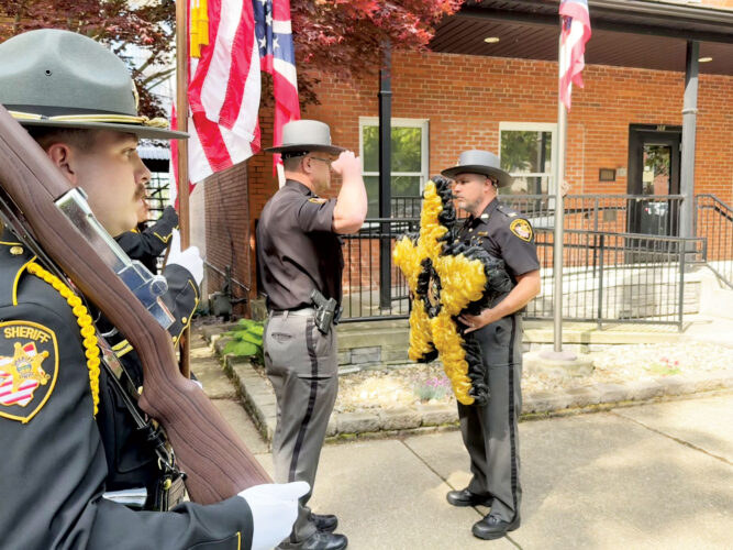 MARIETTA — The community gathered for the wreath laying ceremony in front of the Peace Officers Memorial and the Washington County Sheriff’s Office Memorial on Thursday.