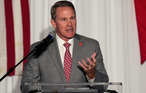 COLUMBUS, Ohio (AP) — Sen. Jon Husted looks on as Vivek Ramaswamy fires up a standing-room-only crowd in Ohio, making the case for why he should be their next governor. It's a speech Husted, just months ago, had expected to give himself.