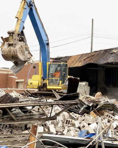 PARKERSBURG – Demolition of the former Wood County Sheriff’s Office and county Maintenance Department building at the corner of Second and Avery streets is underway.