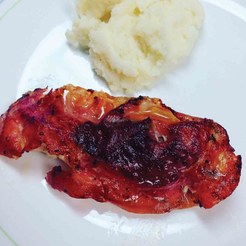 Another night I made the Chicken Saltimbocca, which was chicken breasts cooked in the pan with prociutto and sage. I thought the addition of those flavors made the chicken really good and juicy, and it was easy to make in the pan. And it’s always fun pounding chicken flat!