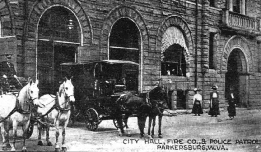 Photo Provided Shown above is a portion of the old Parkersburg City Building that faced Fifth Street. This portion housed the Fire Department and Police Patrol. The city “lock-up,” or jail, was below street level. This building was not completed until 1896.