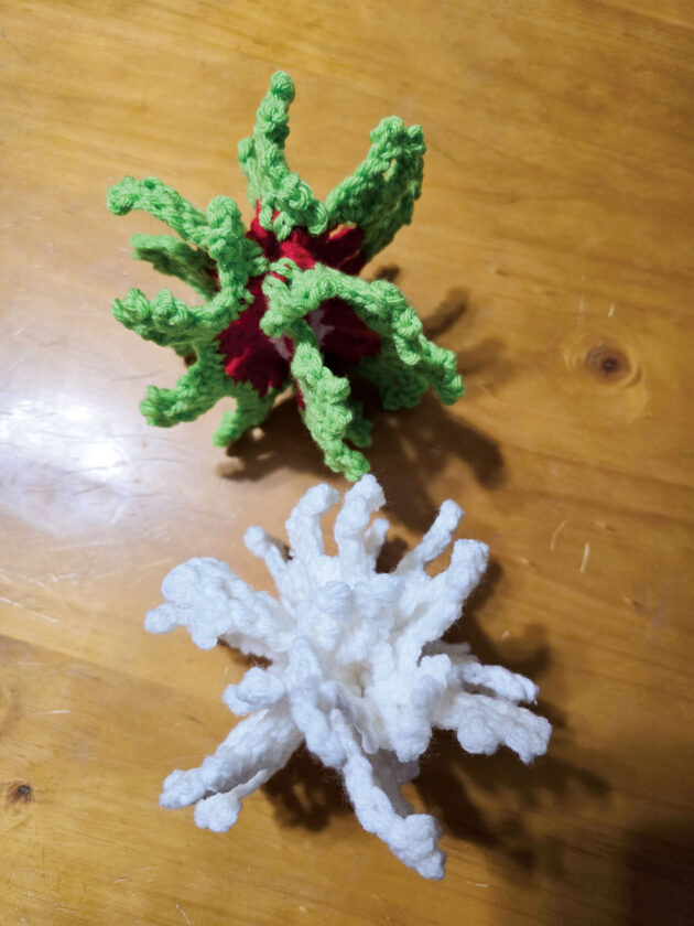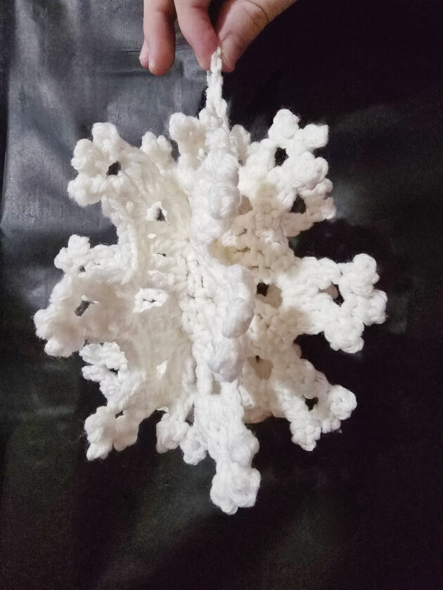 I hope my photos will help you see what my words tried to describe. Have fun crocheting these huge 3D snowflakes. I bet they will look amazing in bright colors too. Until next time…