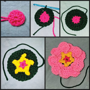 2– The flower stamen and petals are crocheted over the posts of base stitches so they stick up for a 3D look.