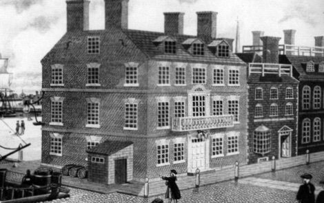 A drawing of the Bunch of Grapes Tavern in Boston. (Image Provided)
