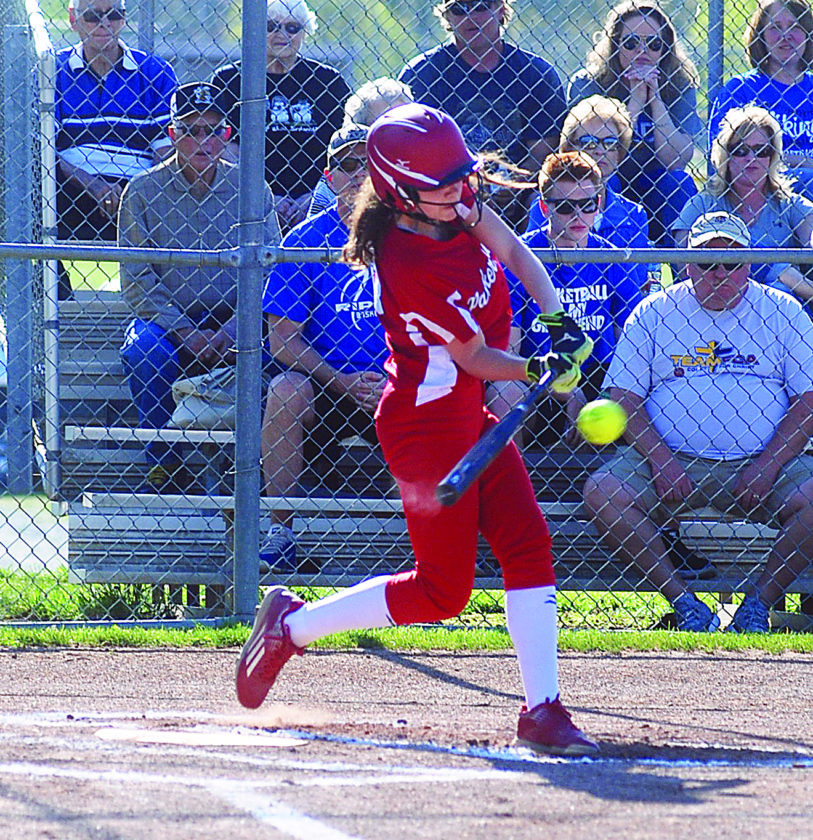 Photo by Jay W. Bennett Parkersburg High’s Maggie Richards doubles during a Class AAA sectional softball game last week at Godbey Field.