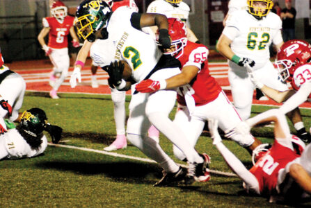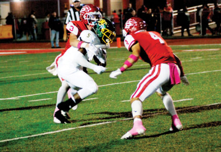 “We’ve lost to three really good football teams and for 90% of those football games we’ve been competitive,” said coach Kimes, whose team held a 17-13 edge in first downs, rushed for more yards (34-123 to 19-83), but lost the total yards battle, 314-232, as both teams were assessed 100-plus stripes in penalties. “We’re right there with them. We can’t beat ourselves against really good football teams. We can’t give up the special teams points we gave up. We can’t fumble in our own end zone.