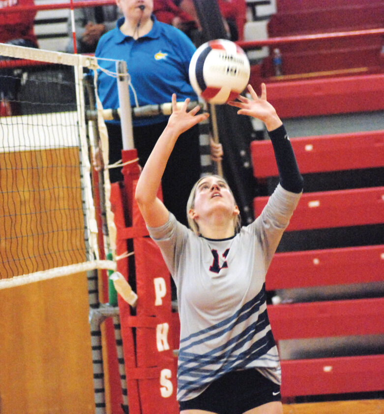 - Parkersburg South’s Reagan Parsons sets the ball during Saturday’s regional tournament inside Parkersburg’s Memorial Fieldhouse. (Photo by Jay W. Bennett)
