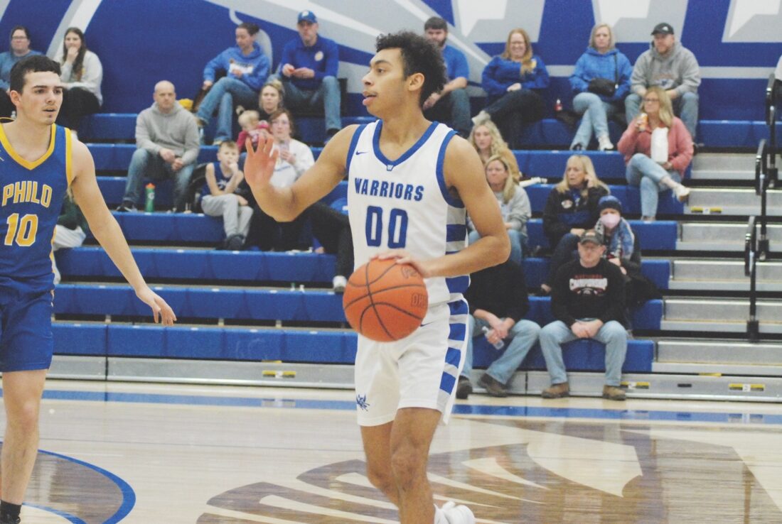Warren’s Julian Stadelman brings the ball up the court during a boys basketball game this season at Warrior Coliseum. (Photo by Jay W. Bennett)