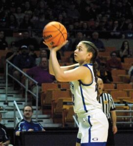 - Gilmer County freshman Kenley Hartshorn calmly knocks down a foul shot during the Titans’ 66-22 blowout of Tug Valley during Saturday night’s Class A state championship game in Charleston. (Photo by Jay W. Bennett)