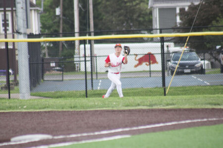 - Parkersburg right fielder Cole Sisk catches a deep fly ball during the Big Reds 6-1 win over Marietta Thursday at Bennett Stump Field. (Photo by Kerry Patrick)