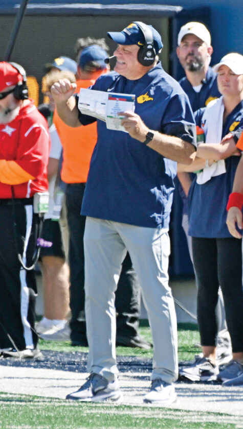 West Virginia head coach Rich Rodriguez reacts to a play during last week’s game against Robert Morris in Morgantown. (Photo by David Pennock)