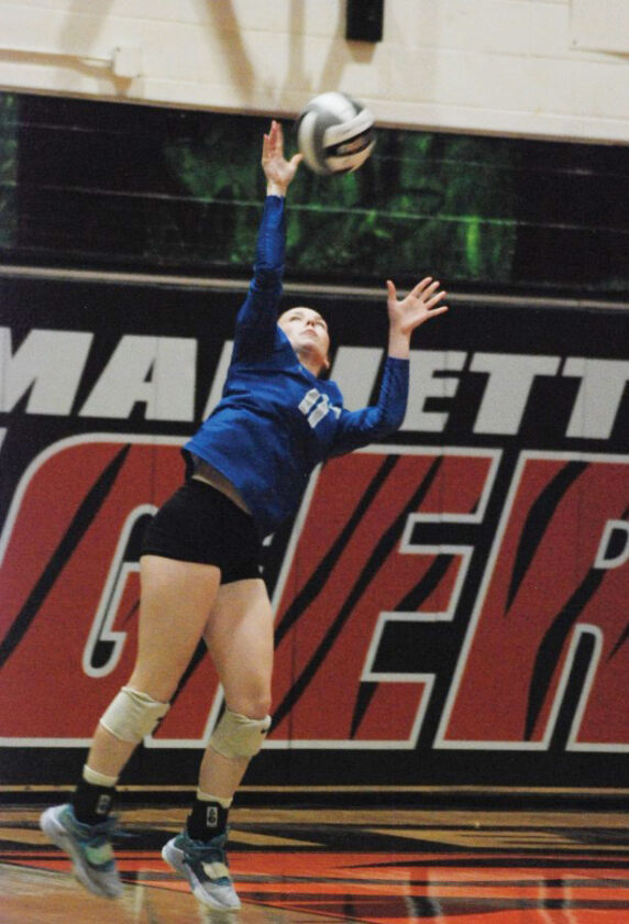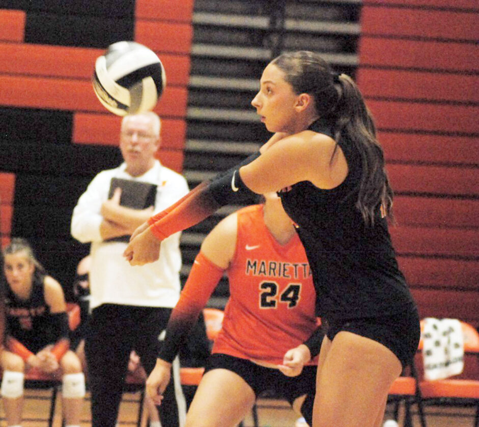 Marietta, which had won five straight, found itself trailing 8-3 in set three after Maevry McCombs put down one of her four kills. The deficit was at seven, 11-4, when Prim assisted on one of Rylee Wilkinson’s 10 kills. Although Clara Becker, who had two aces and 14 digs, strung together three straight service tallies to make it 11-7 the hosts never got any closer.