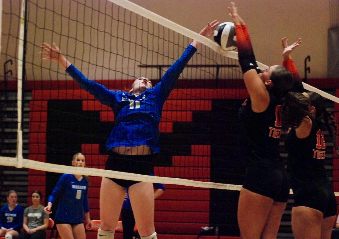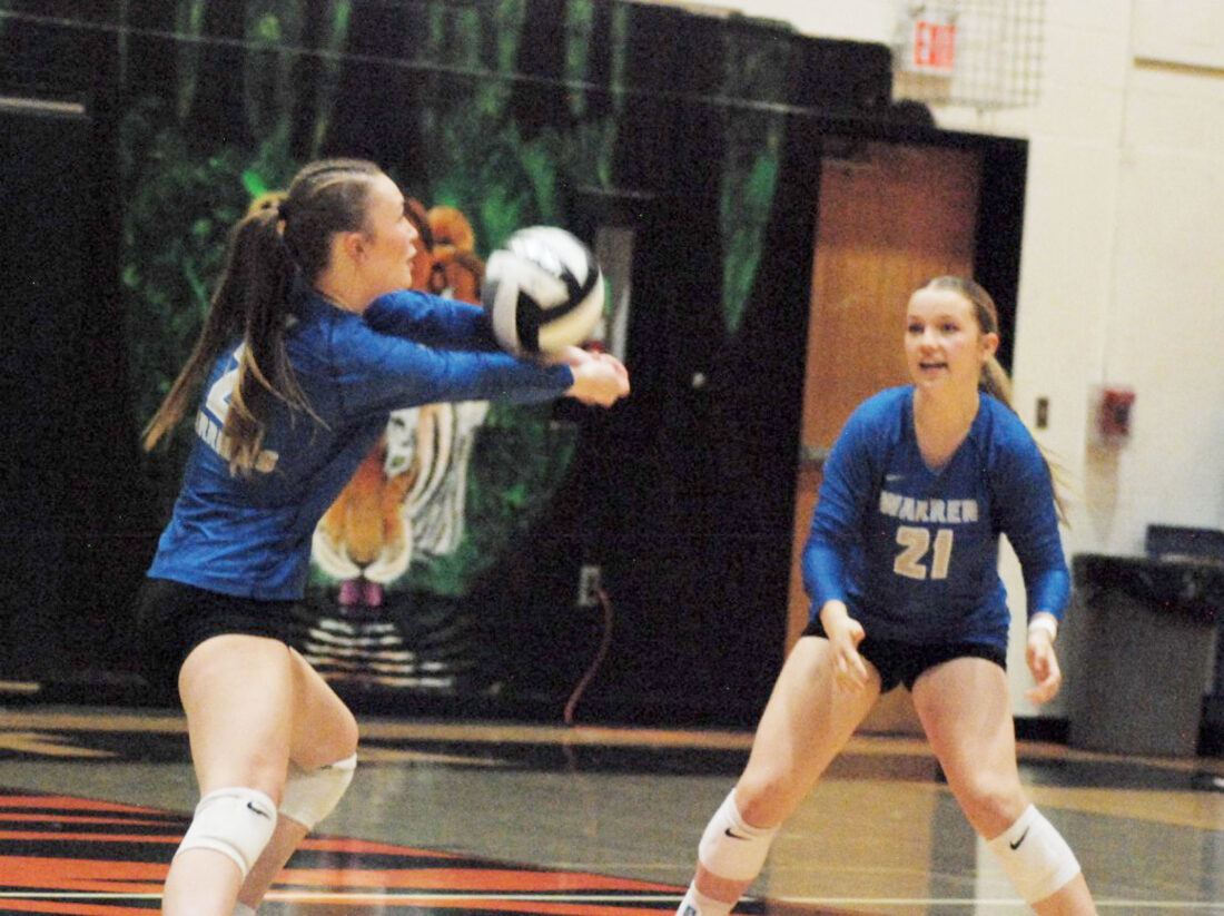 Warren had the Tigers doubled up at 20-10 following an Elayna Greenwalt and Kaitlyn Nutter double block. Braylee Bonnette served up an ace on match point.