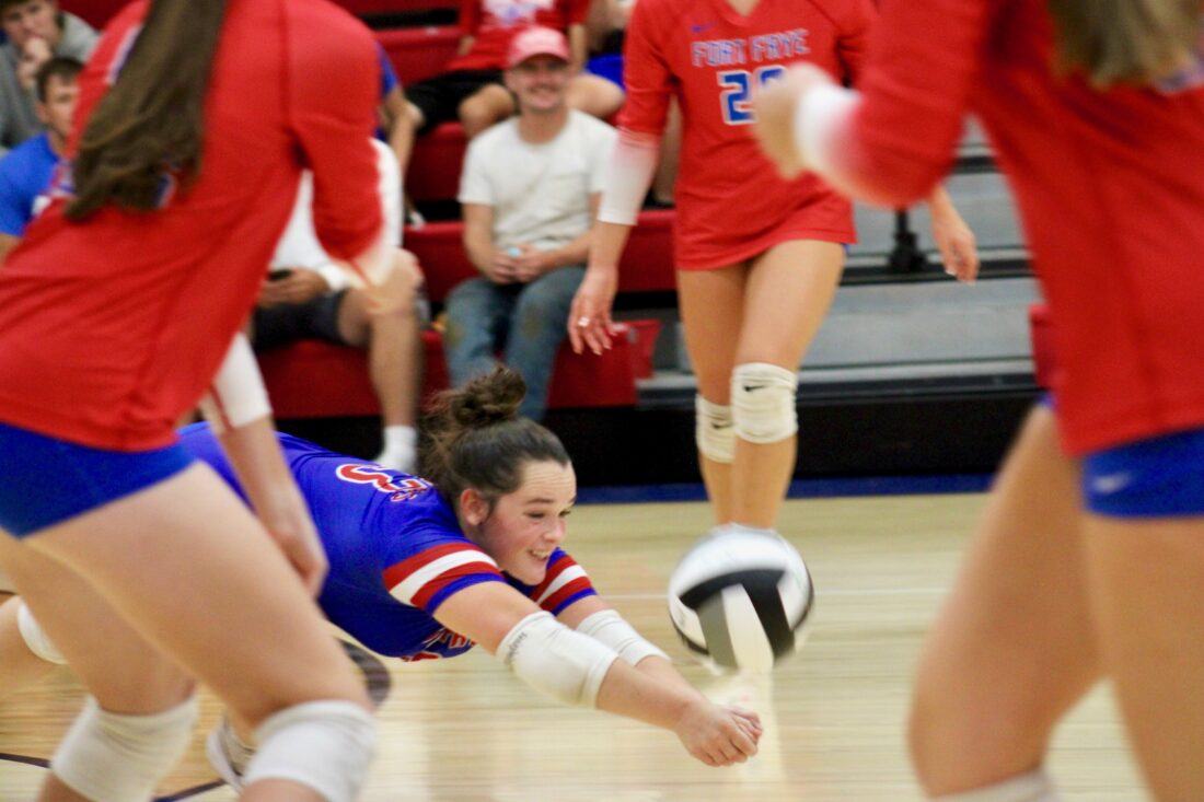 In addition to the play at the net, Fort Frye libero Hannah Weiker laid her body on the line chasing down shot attempts from the opposition.