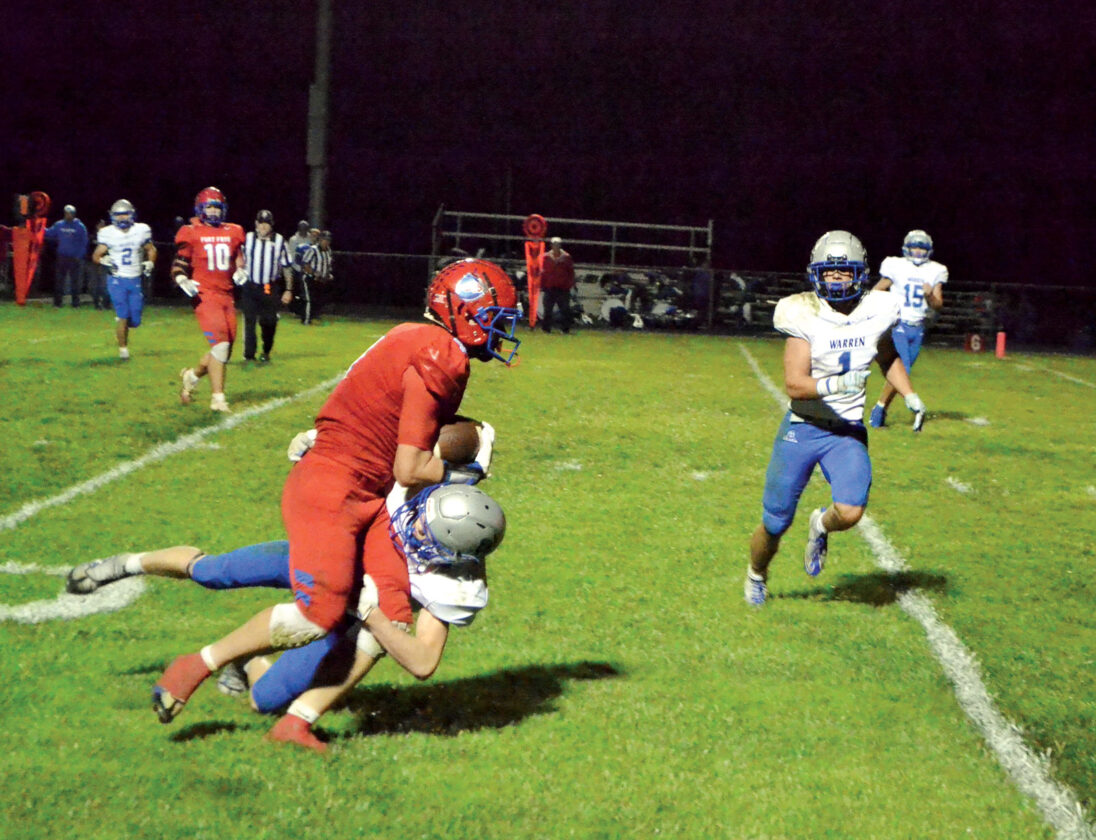 Junior Sam Bricker intercepted a Declan Johnson pass attempt on the second Warren play from scrimmage.