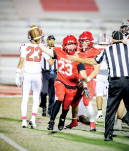 “That happened right in front of us and he reached over the kid and intercepted it and managed to stay on his feet and took off down the sidelines,” said Huck. “He’s only a freshman but he’s been really good this year and just keeps getting better.”