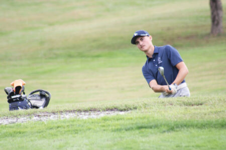 - Ritchie County Carson Hall chips onto the eighth green during the Class A, Region I Tournament, this past Monday at Mingo Bottom Golf Course. (Photo by Kerry Patrick)