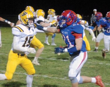 Down 13 points in the second quarter, Fort Frye got a 33-yard pass from Grady Hesson to Tytan Waller to move the ball to WJHS’s 20-yard line. Two plays later, Rauch scampered into the end zone from 24 yards out. The kick was blocked, making it 20-13.